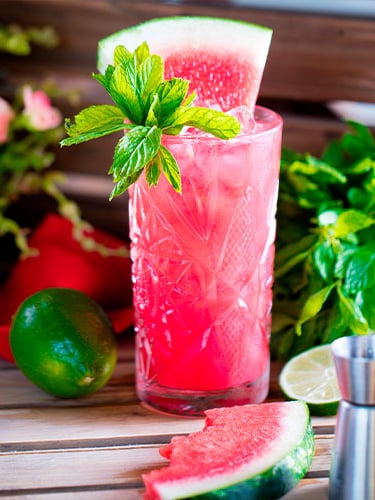 Mojito: una versión diferente del clásico: combina Tequila Barullo® con hierbabuena, jugo de limón, sandía machacada, azúcar o jarabe simple y agua mineral, todo mezclado con hielo. Es fresco, herbal y muy aromático.
