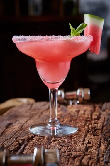 Margarita: se prepara mezclando Tequila Barullo®, jugo fresco de limón, sandía licuada, triple sec (o licor de naranja) y un toque de jarabe simple, servida con hielo y escarchado de sal. El resultado es un cóctel cítrico, balanceado y refrescante.