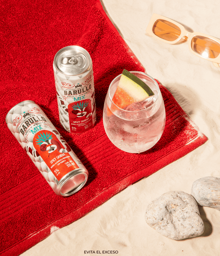 Paloma: se elabora con Tequila Barullo®, jugo de limón, sandía licuada y refresco de toronja o jugo de toronja con soda. Es un cóctel ligero, burbujeante y con un equilibrio perfecto entre dulce, ácido y cítrico.